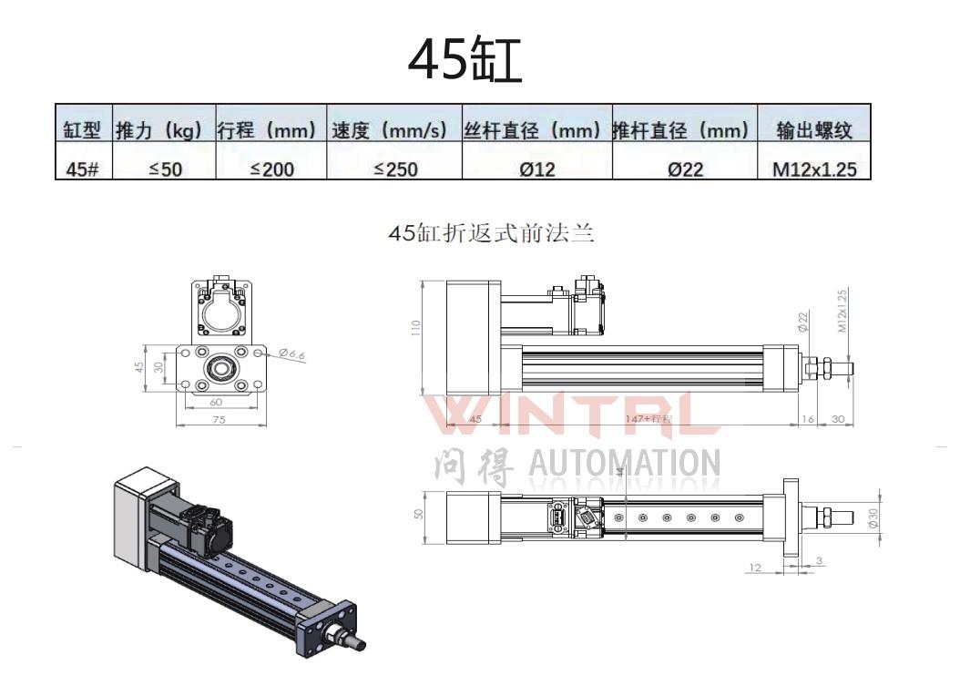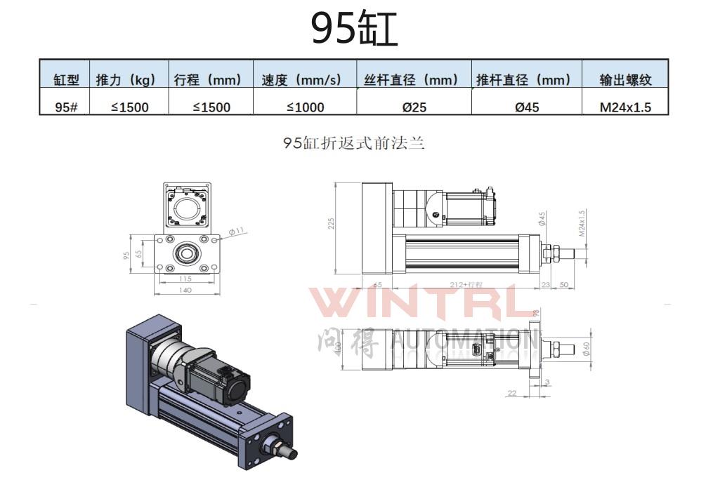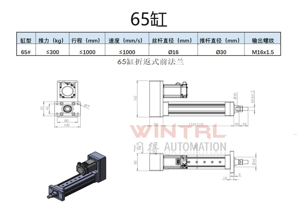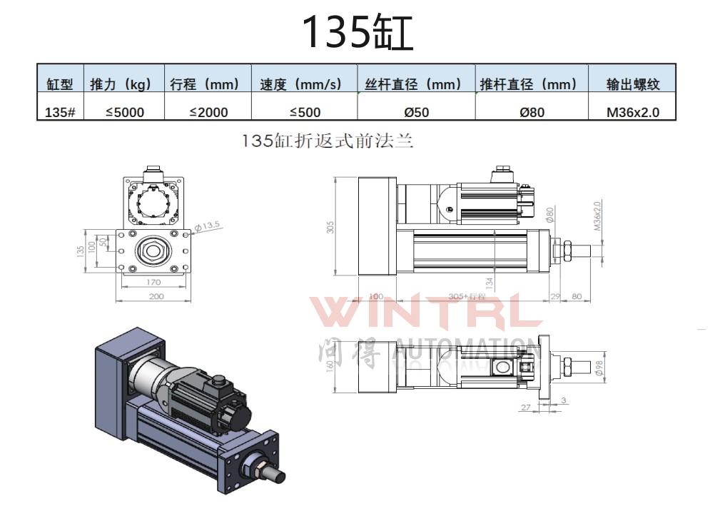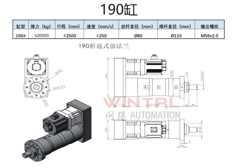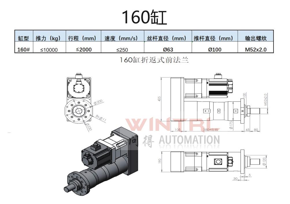 190缸 推力小于20000kg 行程小于2500mm 电机安装方式(折返、直连)电缸安装方式(前法兰、后法兰、脚座、耳轴)接受非标定制 |